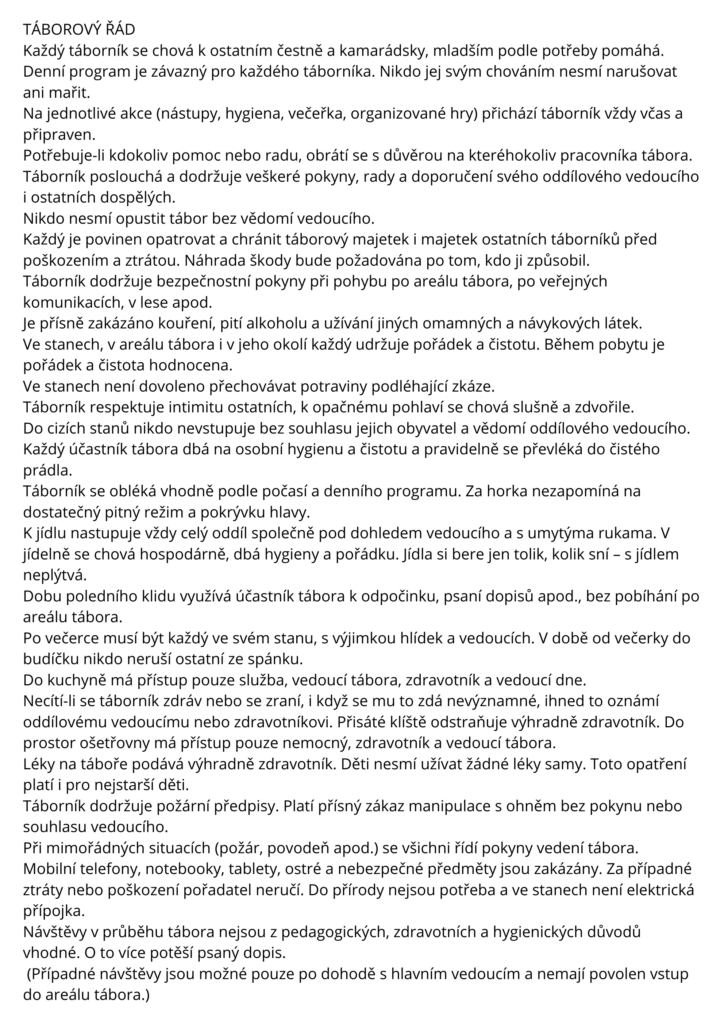 Celková úhrada tábora musí být provedena do 31. 5. 2026.